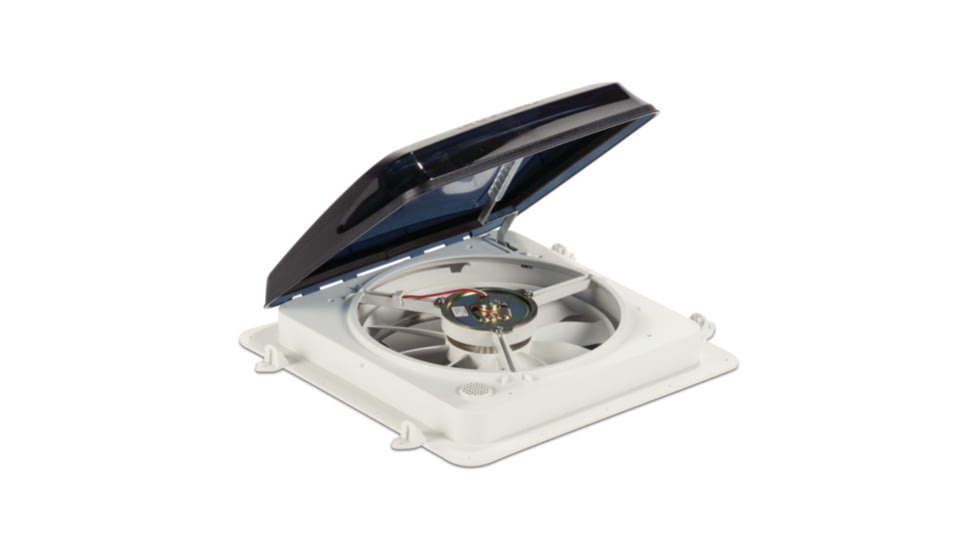 Install your Dometic Fan-Tastic Vent with this polar white ceiling garnish for Model's 1400 and 1450. Dometic's Fan-Tastic Vent has a 12V DC fan motor with a manual crank up lid. It has three fan blade speeds: low, medium and high. This 1450 model also has a single-speed reversible fan blade direction. It has less than a 3 Amp draw on the high mode. This vent will operate while the lid is closed and its quiet operation will not disturb you. Install into any 14" x 14" opening. The vent has a white, high profile universal base with integrated tabs for mounting a Dometic Ultra Breeze Cover.